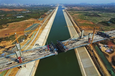 12月15日,引江济淮工程跨径最大的矮塔斜拉桥—兴业大道桥顺利合龙。据悉,桥梁工程是引江济淮工程的重要组成部分,全线分布着大大小小130座铁路、公路、市政等各种类型的桥梁。 受访者 供图