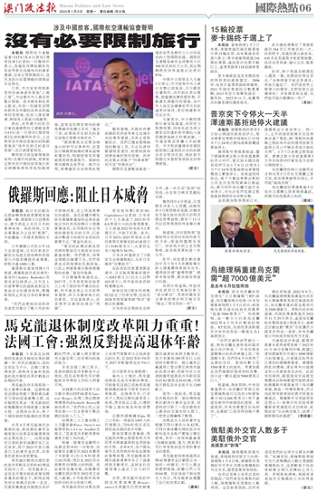 本报讯 据俄罗斯卫星社报道,美国国务院发言人内德·普赖斯1月4日称,俄罗斯在美国的外交官比美国在俄罗斯的外交官多,需要落实对等原则。