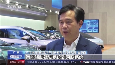 广汽埃安新能源汽车股份有限公司总经理 古惠南:大量的这个科技创新,电池、电机、电控到智能网联、智能辅助驾驶系统,到网联系统,都得到了快速发展。主要就是政策、资本以及科技和市场共同发力,才有今天中国新能源车引领世界的一个现象的达成。