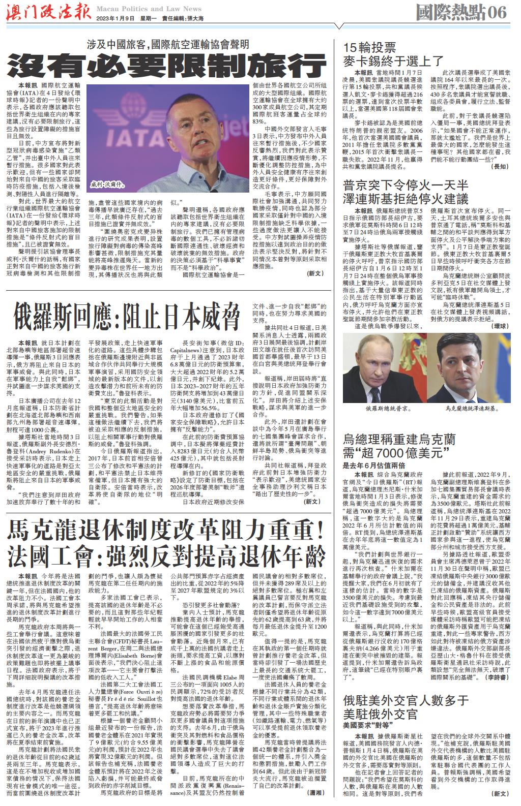 01 一版要闻 02 澳门新闻 03 澳门新闻 04 澳门新闻 05 重点关注 06 国际热点 07 深度观察 08 生活与法