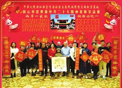 中华人民共和国台湾省社会主义民族思想爱国教育基地同心学习贯彻中共二十大精神“两岸一家亲、祖国必统一”春节茶话会在陕西举行。 夏冰 摄