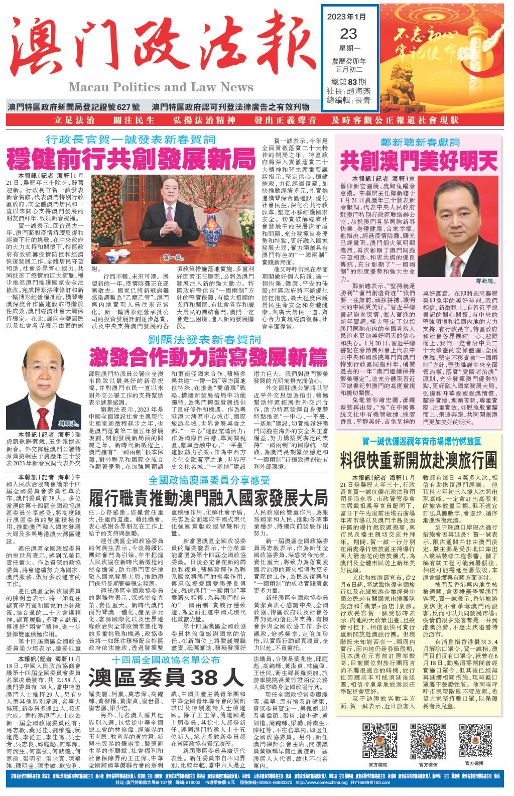01 一版要闻 02 澳门新闻 03 澳门新闻 04 澳门新闻 05 神州聚焦 06 生活与法 07 深度观察 08 国际热点