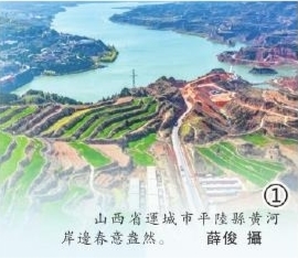 山西省运城市平陆县黄河岸边春意盎然。 薛俊 摄