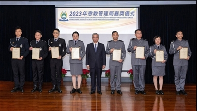本报讯(记者 大林)11日上午,惩教管理局假澳门保安部队高等学校礼堂举行2023年度嘉奖仪式,表彰先进、鼓舞士气,同时对本年度的各项工作进行总结。仪式由保安司司长黄少泽主礼,保安司司长办公室主任张玉英出席。
