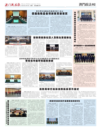 各晋升人员在宣誓后,黄文忠为各人佩戴肩章,正式晋升成为高级关务督察,仪式上亦向获得总成绩优异奖的人员郑华锦颁发奖项。今次是自第13/2021号法律《保安部队及保安部门人员通则》生效后首批获晋升的高级关务督察,9名高级关务督察已在海关服务多年,专业知识扎实及工作经验丰富。