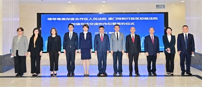 本报讯(记者 大林)12月13日下午,澳门特别行政区第一审法院姚颖珊院长和横琴粤澳深度合作区人民法院陈晓军院长分别代表澳门特别行政区初级法院和横琴粤澳深度合作区人民法院,在横琴粤澳深度合作区人民法院签署了《澳门特别行政区初级法院横琴粤澳深度合作区人民法院加强司法交流协作纪要》。纪要包含七方面的内容:一、不断巩固和深化两地法院互访交流机制;二、双方轮流举办各类专业研讨活动;三、持续开展信息交流;四、认真执行两地司法协助安排;五、相互分享两地司法改革及司法领域信息技术应用的经验;六、共同研究和推动为粤港澳大湾区和横琴粤澳深度合作区建设提供司法服务和保障的相关事项;七、双方各指定一名联系人保持沟通与联络。