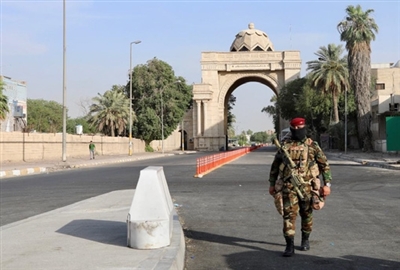 2019年6月4日,在伊拉克首都巴格达,一名士兵在“绿区”入口警戒。新华社发(哈利勒·达伍德摄)