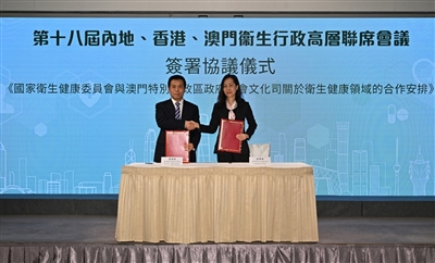 欧阳瑜司长与雷海潮在会上续签了《国家卫生健康委员会与澳门特别行政区政府社会文化司关于卫生健康领域的合作安排》,以加强内地和澳门卫生健康领域的合作。