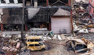 这是1月4日在日本石川县轮岛市拍摄的“轮岛早市”的废墟。新华社记者张笑宇摄