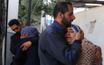 1月5日,在加沙地带南部城市拉法,人们哀悼以军空袭的死难者。新华社发(哈立德·奥马尔摄)