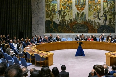 2023年12月8日在位于纽约的联合国总部拍摄的联合国安理会会议现场。美国当日否决了联合国安理会一份旨在推动实现巴以人道主义停火的决议草案。多国对此表示失望和遗憾。新华社发(联合国供图/洛伊·费利佩摄)
