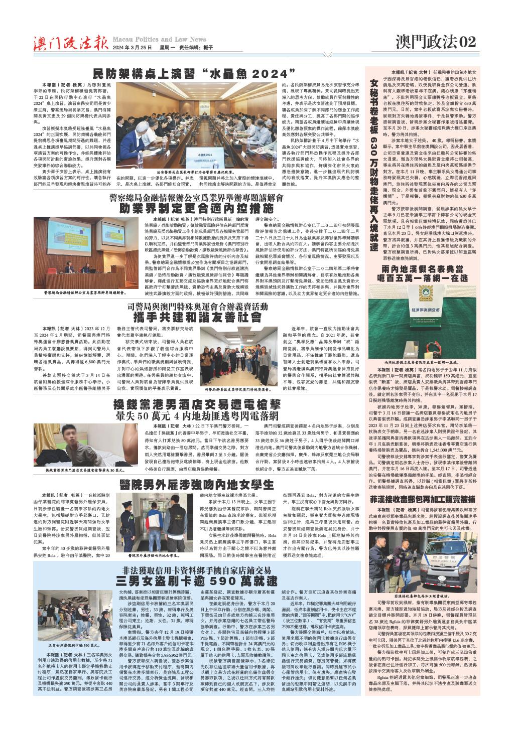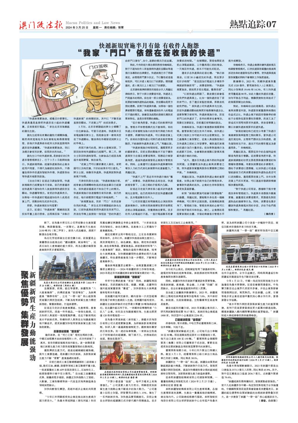 01 一版要聞 02 澳門政法 03 澳門專題 04 澳門新聞 05 神州聚焦 06 國際熱點 07 热点追踪 08 深度觀察