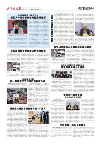 本报讯(记者 海轩)旅游局局长文绮华3日出席时事节目《澳门讲场》,与市民探讨本澳旅游业发展。文绮华表示,复活节4日共录得40.6万人次旅客,按年上升 19.7%,当中国际旅客日均7,200人次,按年升8成,酒店入住率达 88%,旅客人数及酒店入住率符合预期。另外清明节内地有3日假期,预计日均有10万人次旅客入境。下一个旅客高峰期在五一黄金周,预计旅客人次较清明假期高。
