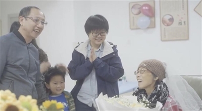 2023年12月8日是石老仔妻子的生日。病区的医护人员和志愿者提前一个礼拜就开始为他筹备这场惊喜。那一天,在儿女和孙子的见证下,石老仔为妻子点燃了生日蛋糕上的蜡烛,将对妻子的感激和眷恋凝聚成一首诗的告白,听哭了病房里的所有人。