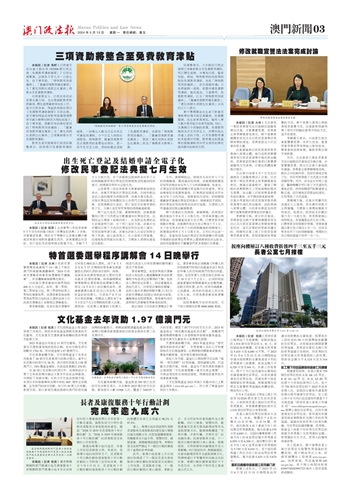 另外,立法会第三常设委员会完成讨论修改民事登记法典法案,并签署意见书,将交立法会大会细则性审议。委员会主席黄显辉会后称,修改文本的新内容,包括民事登记电子化,市民可利用电子方式递交申请或声明等;另外,涉及出生和死亡登记,医疗机构亦可以电子方式通知民事登记局,政府相关部门的数据会互联互通,而民事登记局发出的通知,亦可用电子方式处理。