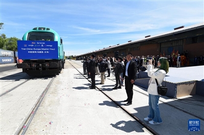 本报讯 中欧班列(义乌—马德里)开行十周年纪念号班列8日从西班牙首都马德里的阿布罗尼加尔车站鸣笛发车。