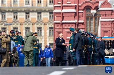 本报讯 俄罗斯9日在莫斯科红场举行阅兵式,纪念卫国战争胜利79周年。俄国防部长绍伊古和俄联邦武装力量陆军总司令萨柳科夫乘车检阅各方队。俄总统兼武装力量最高统帅普京出席并致辞。