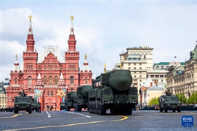 5月9日,在俄罗斯首都莫斯科,“亚尔斯”导弹系统编队驶过红场。新华社记者 曹阳 摄