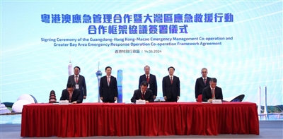 粤港澳三地签署《粤港澳应急管理合作暨大湾区应急救援行动合作框架协议》。