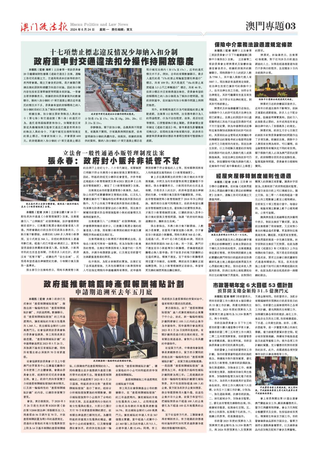 01 一版要聞 02 澳門政法 03 澳門專題 04 澳門新聞 05 神州聚焦 06 國際熱點 07 深度觀察 08 生活与法