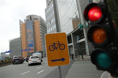 6月3日,在比利时布鲁塞尔,车辆驶过欧盟委员会大楼(资料照片)。新华社记者赵丁喆摄