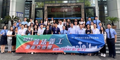 本报讯 (记者 桂英)为加强对普法义工团成员的爱国教育,加深他们对内地法治建设的了解,法务局于8月8日至11日举办「2024普法义工重庆考察交流活动」,组织澳门法律交流协进会、澳门金融法律学会、澳门青年法学会、「普法动力」青年义工团、澳门妇女普法义工团、澳门小区普法义工团和工青普法义工团共35人前往重庆进行学习交流。