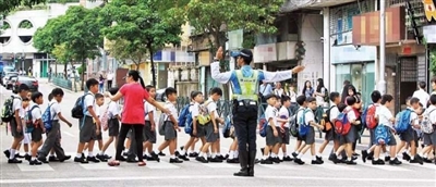 在开学前和开学初期,治安警察局会加派人员到学校周边处理违泊车辆及将部分泊车位改为临时上落客区,以确保学校周边道路安全以及便捷家长接送学生到学校;同时会加派人员于上学及放学时段到学校周边路段及交汇处指挥及疏导交通,维持安全交通秩序及提升通行效率。此外,交通事务局、治安警察局及两巴将安排拖车候命,以尽快处理路面状况。