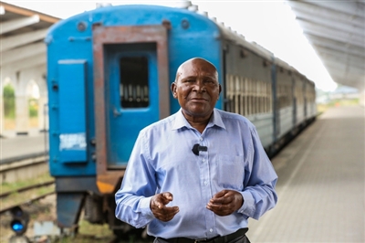 坦赞铁路退休列车司机恩贡亚尼在达累斯萨拉姆站。