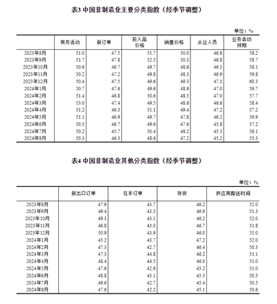 供应商配送时间指数为49.6%,比上月上升0.3个百分点,仍低于临界点,表明制造业原材料供应商交货时间继续延长。