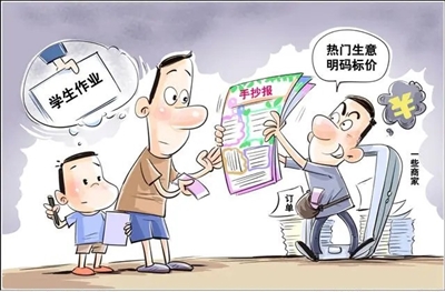 在教育行业深耕十余年的教育专家李一陵认为,近年来,我国基础教育学校在推进五育并举,要求学校要开展美育、体育、劳育等,这一方向无疑是正确的,但不少学校在推进时出现了以作业代教育的倾向。比如春节要制作灯笼、元宵节要制作花灯、端午节制作龙船,还有诸如手抄报、App打卡、小视频、网上答题、心得体会等各种实践作业。学校在布置这些作业时,没有对学生能否独立完成进行科学论证,有些作业超出了学生的完成能力,最后自然而然成了家长的作业。而家长又没有时间精力去做,自然会带动“作业买卖”市场的兴起。