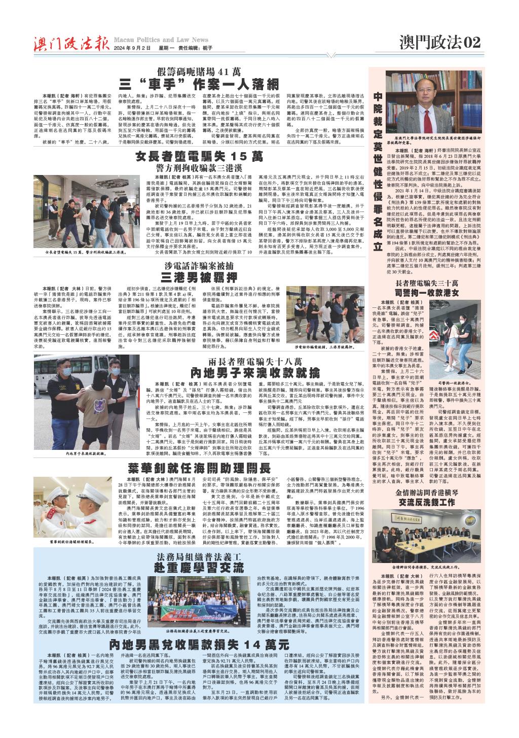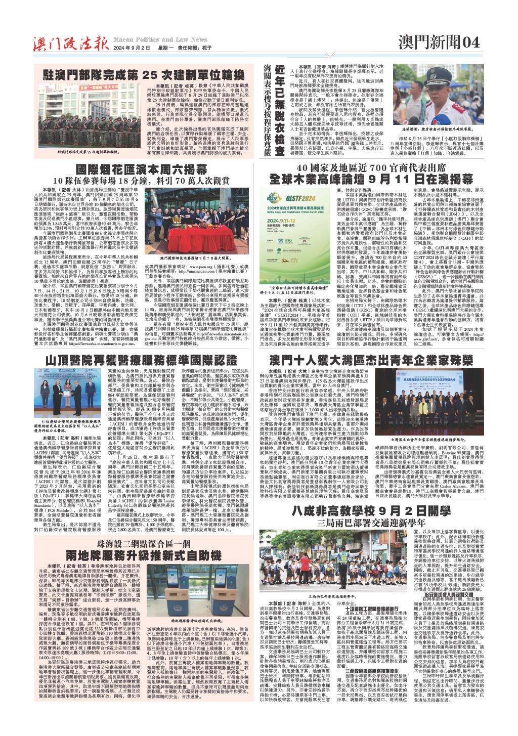 01 一版要聞 02 澳門政法 03 澳門專題 04 澳門新聞 05 神州聚焦 06 國際熱點 07 深度觀察 08 生活与法