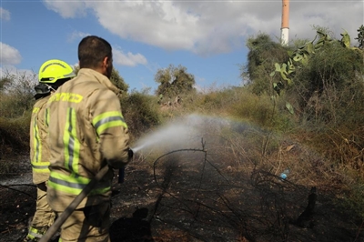 9月15日,在以色列中部城市卢德附近,消防员在导弹落入区灭火。新华社发(贾马尔·阿瓦德摄)