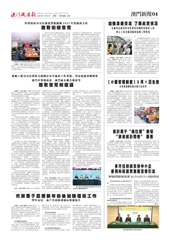 戴建业感谢街总一直以来对特区政府施政的支持,以及致力为居民提供社区服务的贡献。对于会方提供的宝贵意见,团队将认真分析研究,作为编制经济财政范畴本年度施政方针的参考。他表示,习近平主席对澳门发展提出了重要期望和要求,经济财政范畴的团队会持续认真学习领会当中的精神,并以此为工作指引,在行政长官的领导下,全面落实好新一届特区政府提出的施政理念和各项工作部署。他强调,经财团队将致力优化营商环境,支持中小企业提质发展,并正积极研究推动社区经济发展相关措施,务求让更多居民和企业分享到经济发展的成果。同时,经财团队会在广纳各界意见的基础上积极作为,进一步对接国家发展战略,着力推进澳门经济适度多元发展,为服务国家发展大局作出更多贡献。