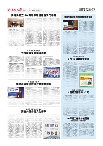 本报讯 (记者 桂英)市政署于七月续与动保团体合办犬只卫生医疗讲座、犬猫领养分享讲座及校园生命教育讲座等活动,并透过于小区举办“毛孩预备班─宠物信息站”,推广动物防疫保护、领养及做个尽责饲主等理念,欢迎市民参加。