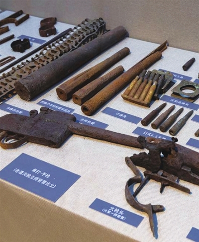 记者在抗联体验馆二层的七星山地区抗联展示区看到了机床齿轮、步枪枪管、药瓶、缝纫机头等各类抗联文物,斑驳锈迹诉说着岁月沧桑。