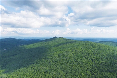 夏日时节,在黑龙江省集贤县、桦南县、双鸭山市岭东区交界处,七星山国家森林公园内绿涛起伏,主峰附近的七座石砬子峥嵘峭拔。