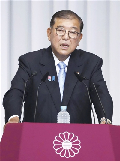 7月21日,在日本东京,日本首相石破茂在记者会上发言。新华社/共同社