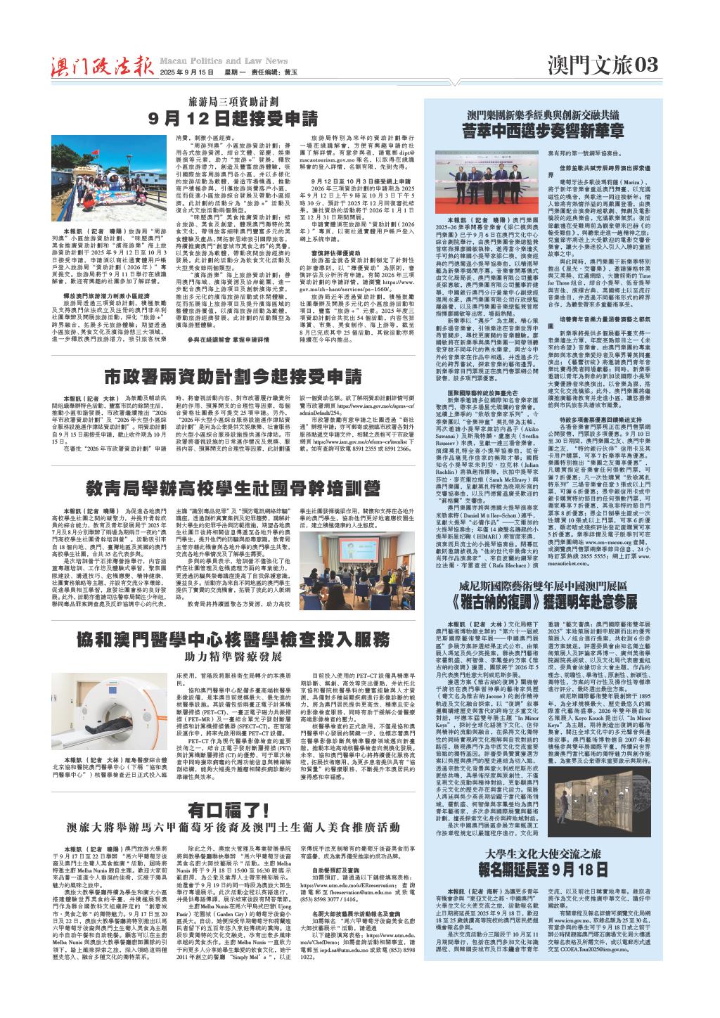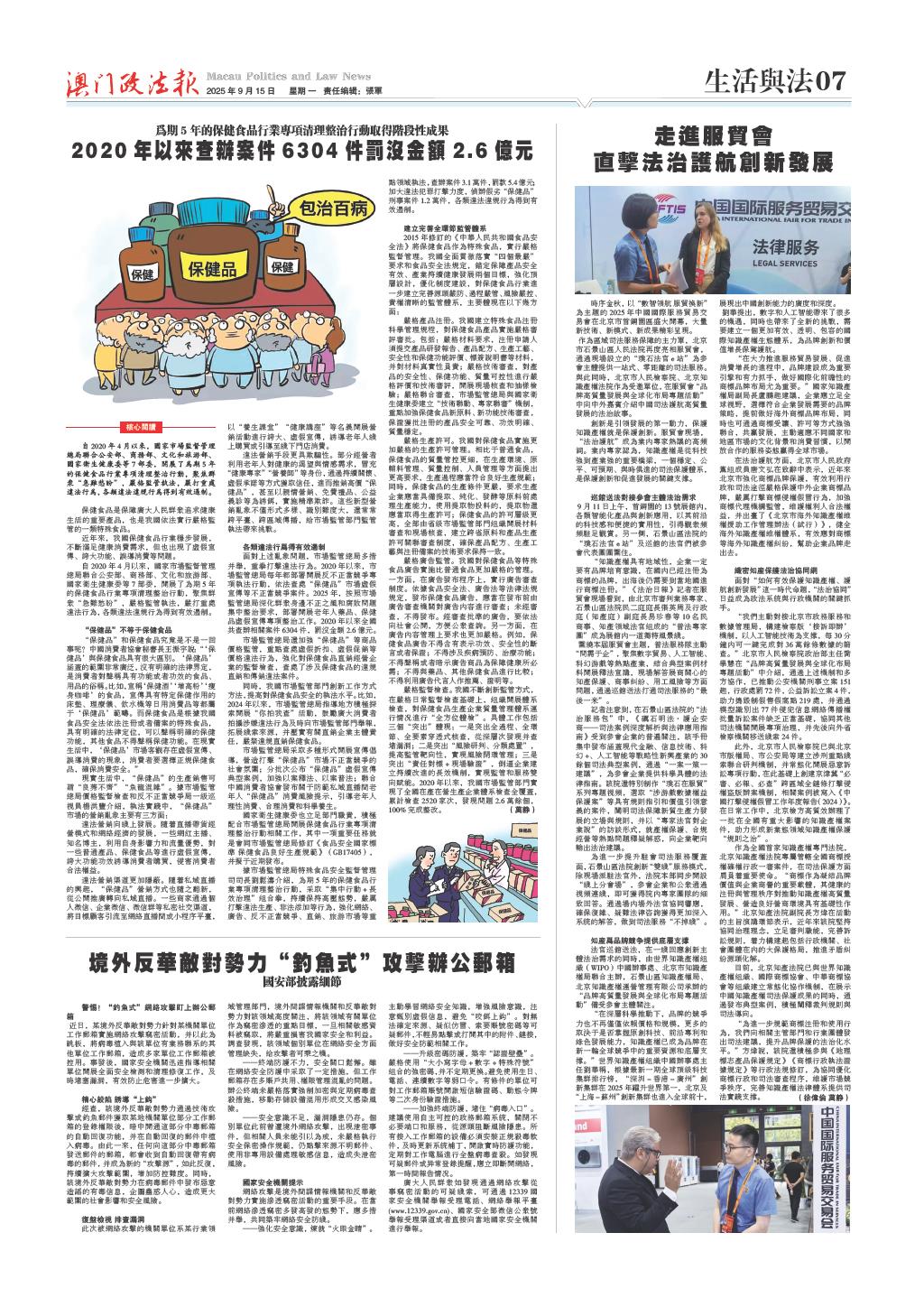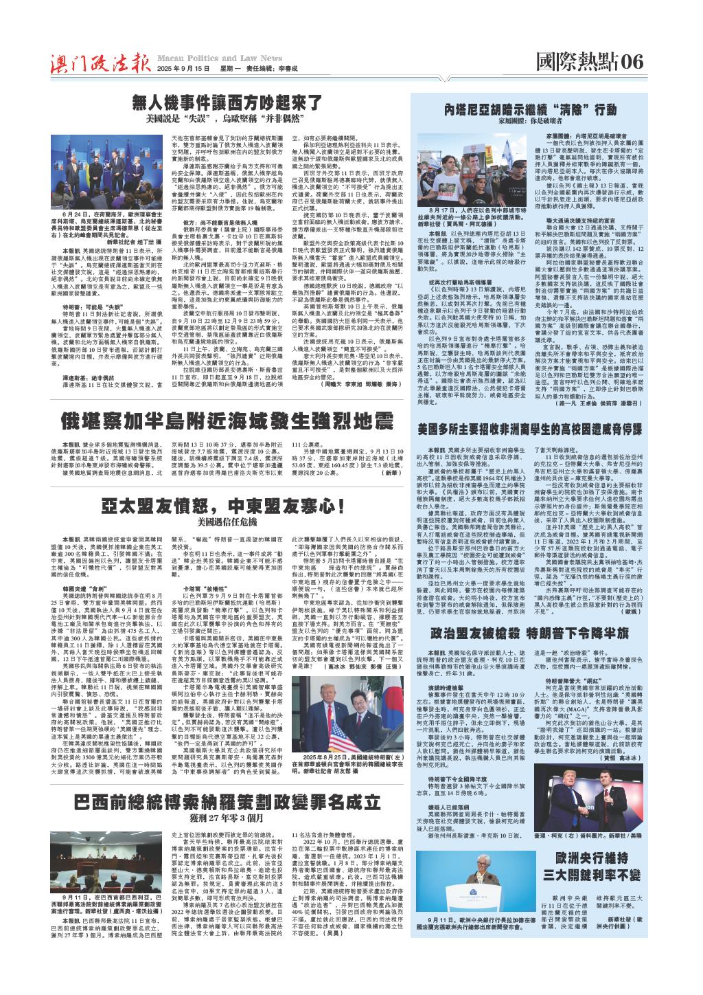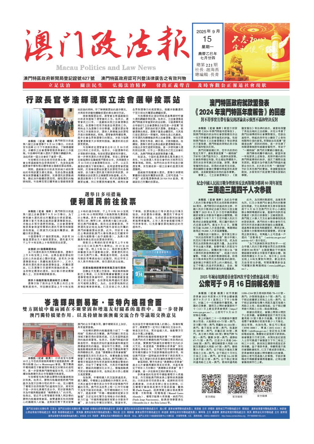 01 一版要闻 02 澳门政法 03 澳门文旅 04 澳门新闻 05 神州聚焦 06 国际热点 07 生活与法 08 深度观察