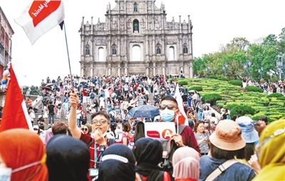 连续八天中秋国庆超级黄金周,本澳各个旅游区人流如鲫,开启了人山人海模式。在关闸口岸,旅客人流不绝,赌场巴等候区排起长龙,巴士站和的士站亦有不少人候车,多名警员维持秩序。