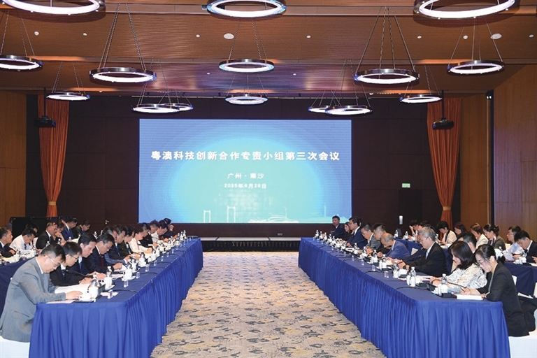 本报讯(记者 桂英)粤澳科技创新合作专责小组第三次会议于6月26日在广州南沙顺利举行。澳门特别行政区政府经济及科技发展局局长邱润华、广东省科学技术厅厅长王月琴、中央人民政府驻澳门特别行政区联络办公室经济部副部长杨全州等出席会议。