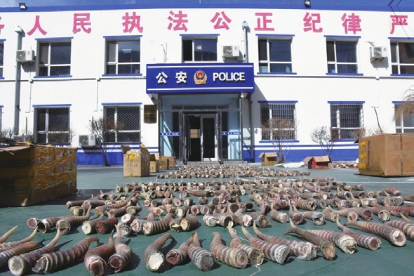 内蒙古自治区二连浩特市,中午时分。某小区一个平房院落内,民警依次打开10间出租房的门,室内景象触目惊心:到处堆放着疑似狼头、狼皮、狼牙、鹿尾、羚羊角等野生动物制品,还有涉嫌非法经营的香烟……
